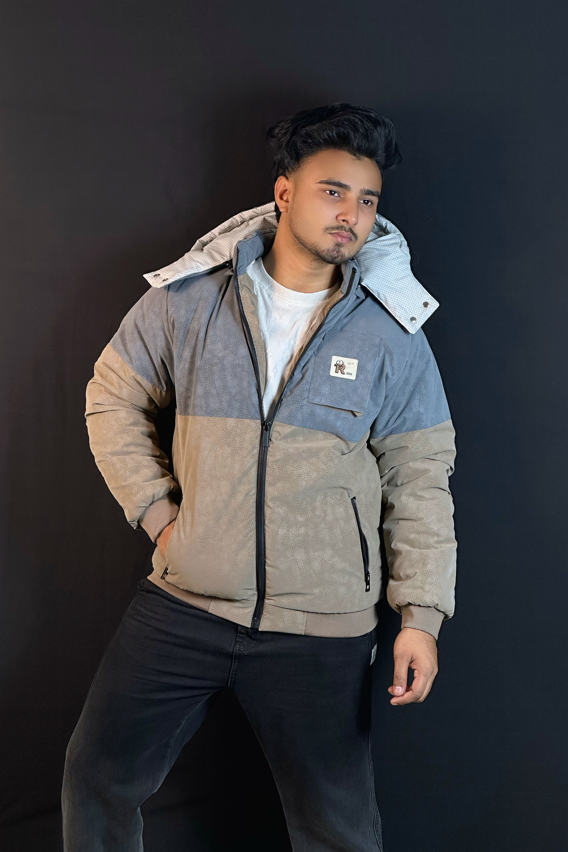 অ্যাশ-কফি কনট্রাস্ট চায়না বম্বার জ্যাকেট-RS