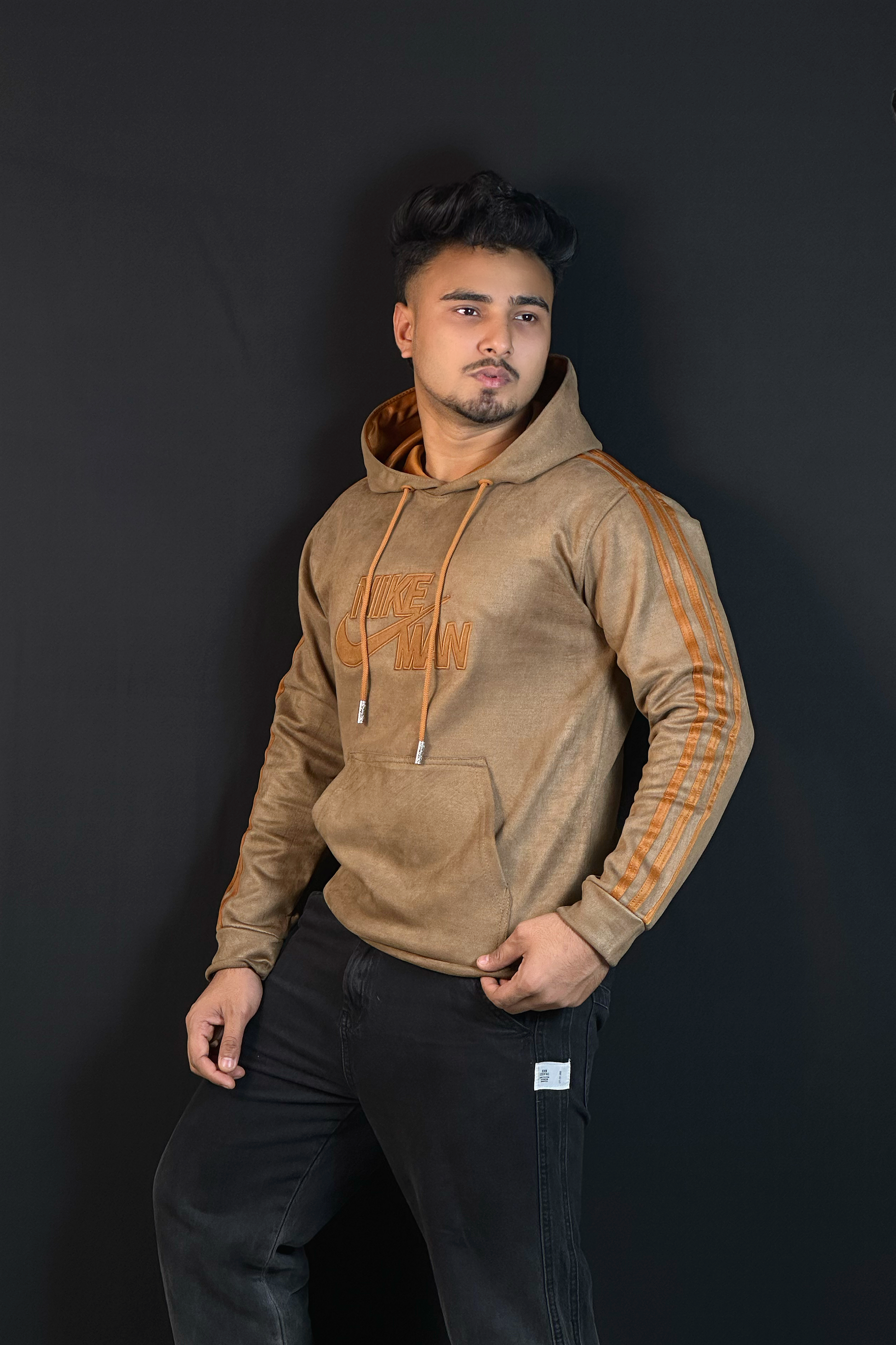 কফি কালার চায়না ভেলভেট হুডি-NIKE-MAN