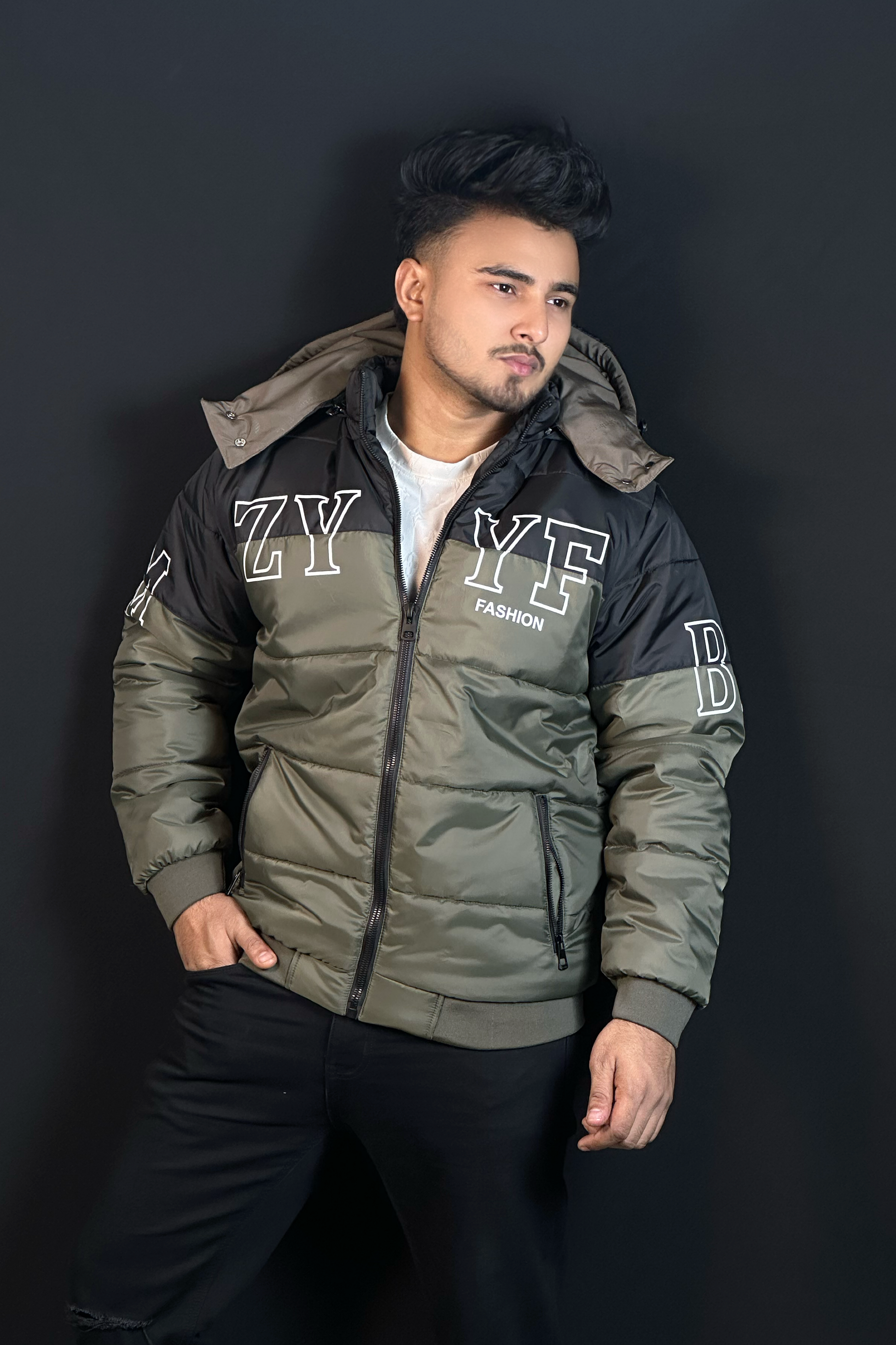 কালো অলিভ কনট্রাস্ট চায়না বম্বার জ্যাকেট-YZ
