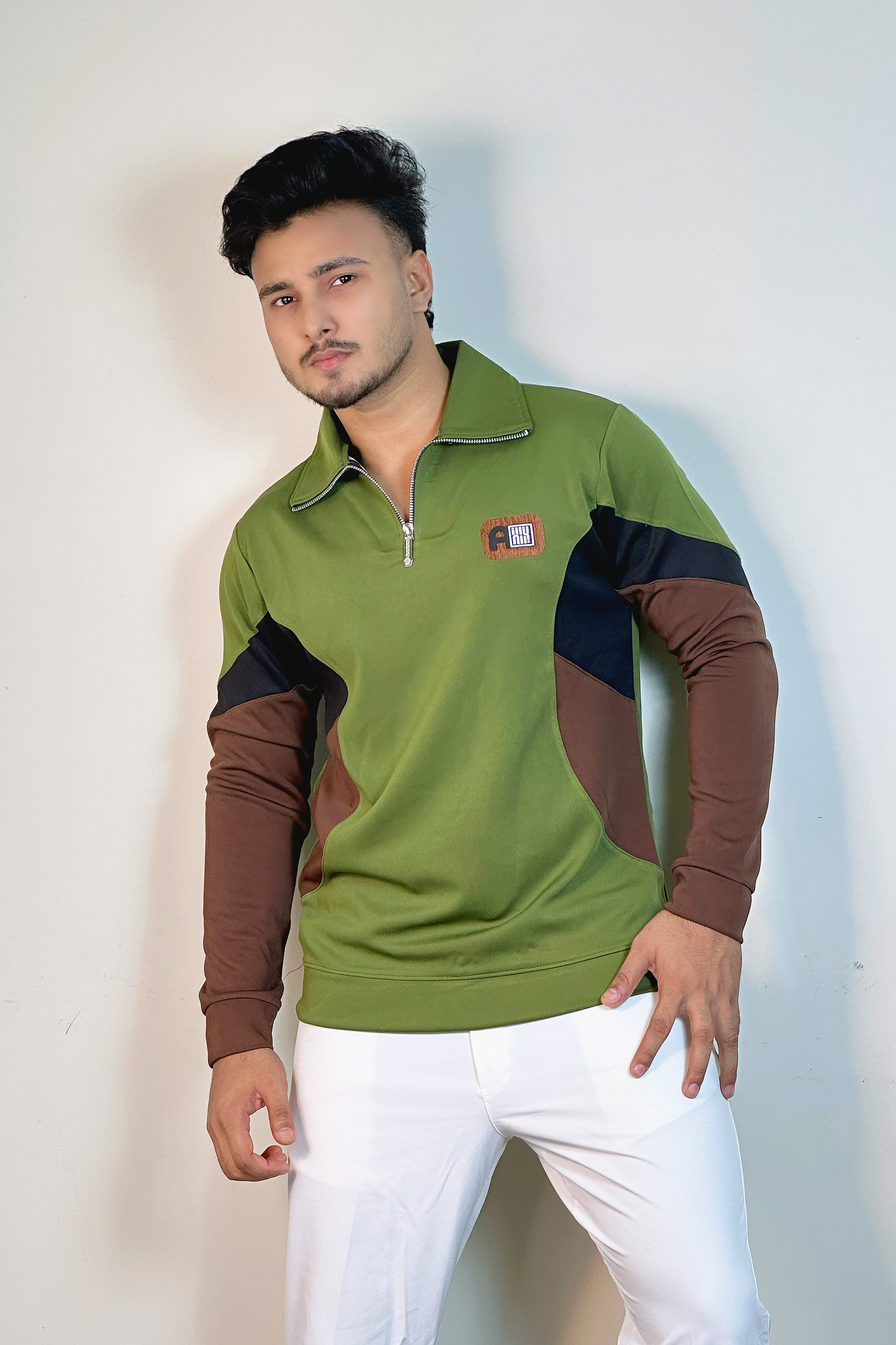 অলিভ কালার সোয়েটশার্ট-CONTRAST