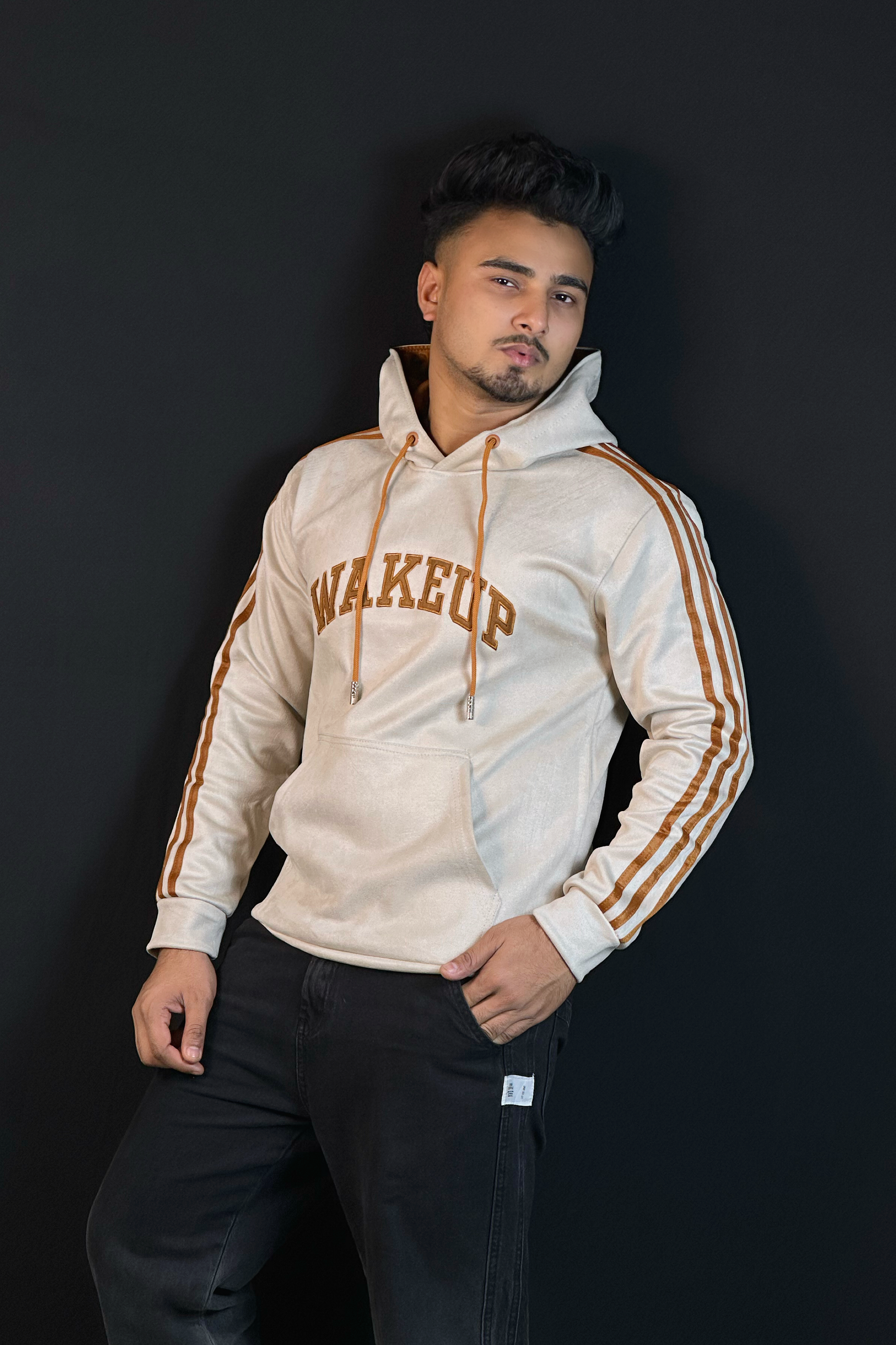 ক্রিম কালার চায়না ভেলভেট হুডি-WAKEUP