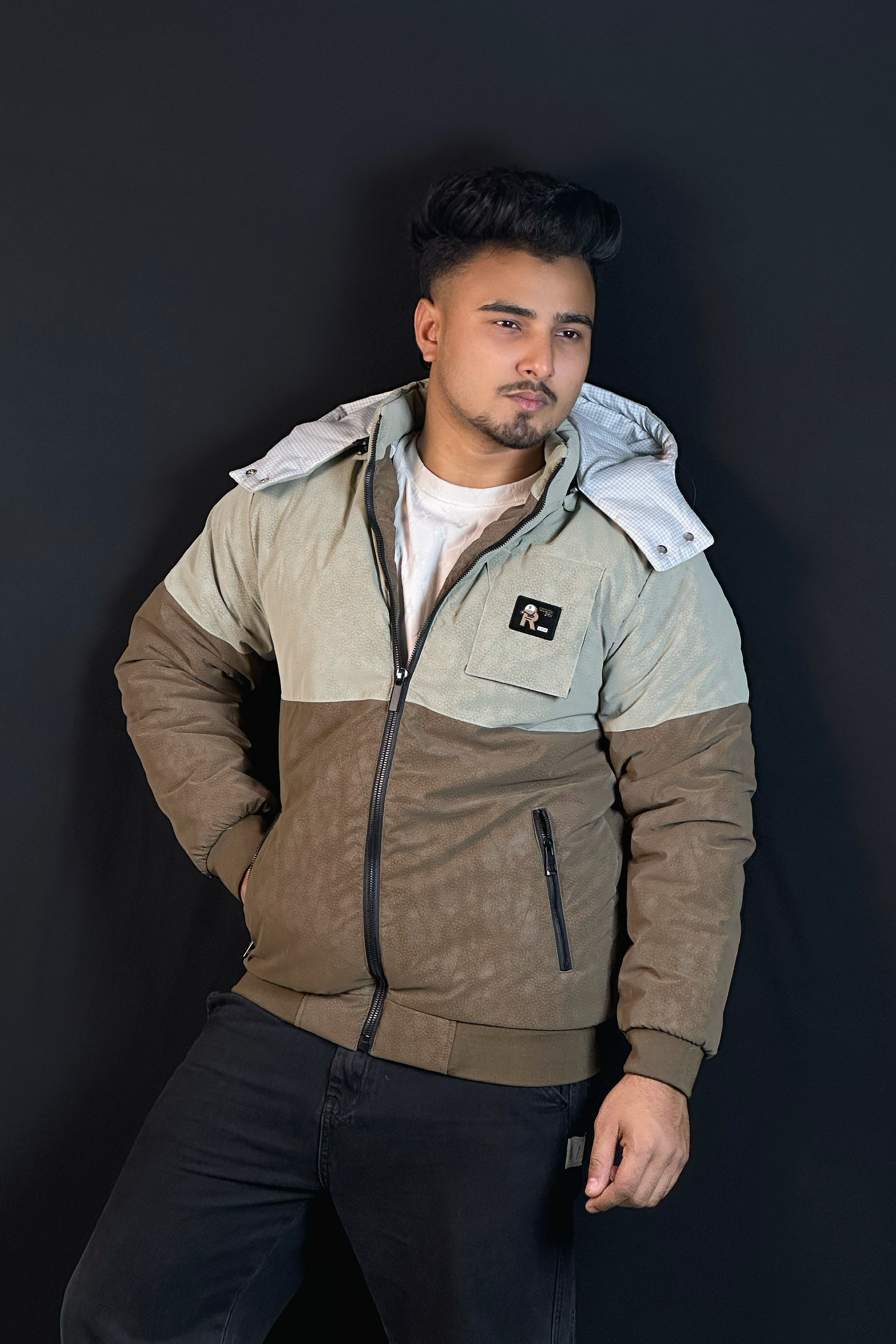 গ্রীন চকলেট কনট্রাস্ট চায়না বম্বার জ্যাকেট-RS
