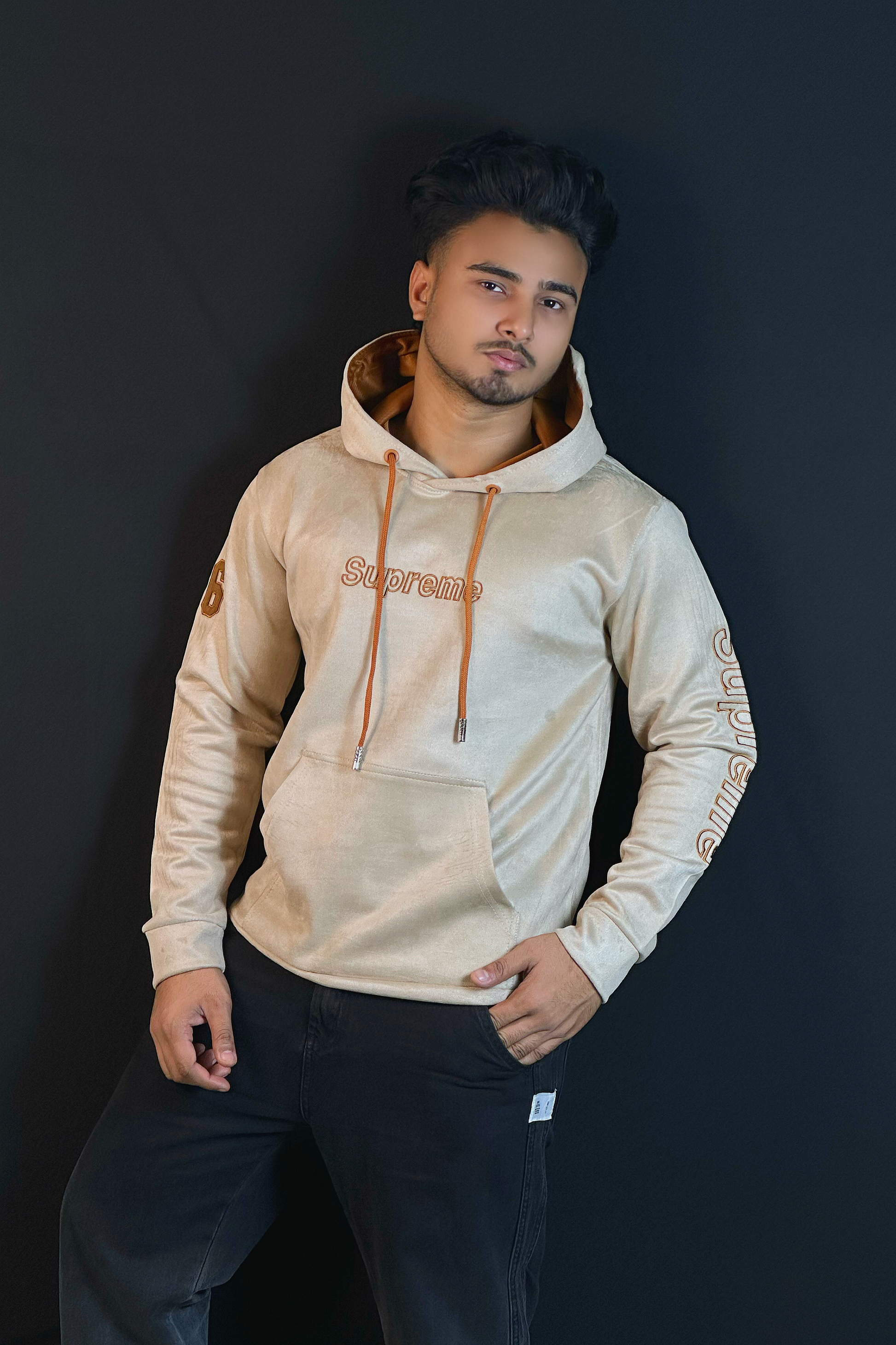 ক্রিম কালার চায়না ভেলভেট হুডি-Supreme