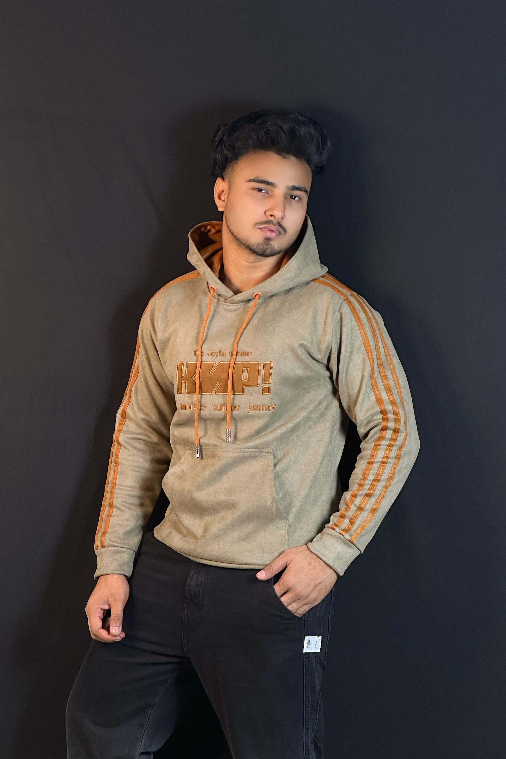 মিডেড অলিভ কালার চায়না ভেলভেট হুডি-KNP