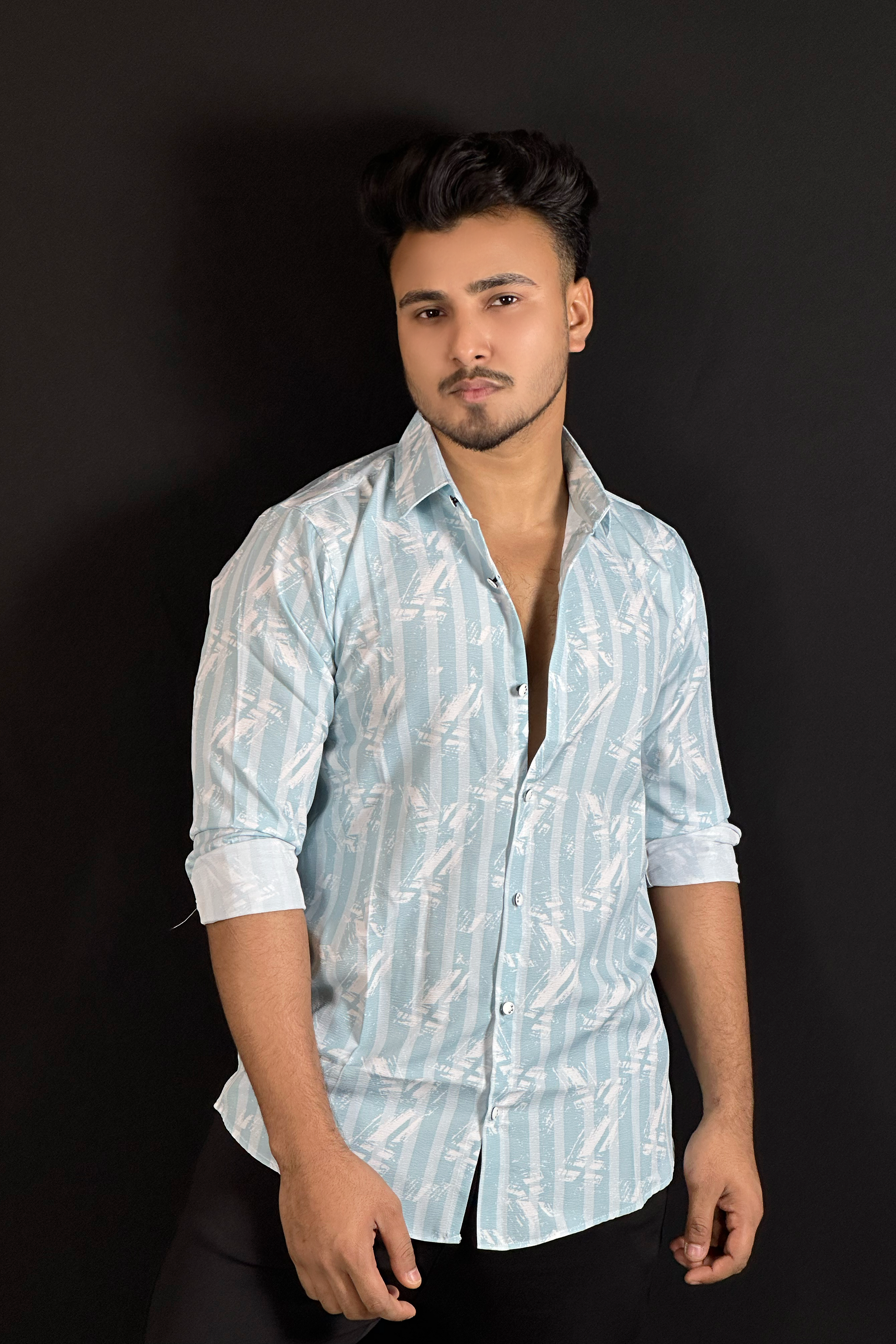 আইস ব্লু প্রিন্টেড শার্ট-Lstripe