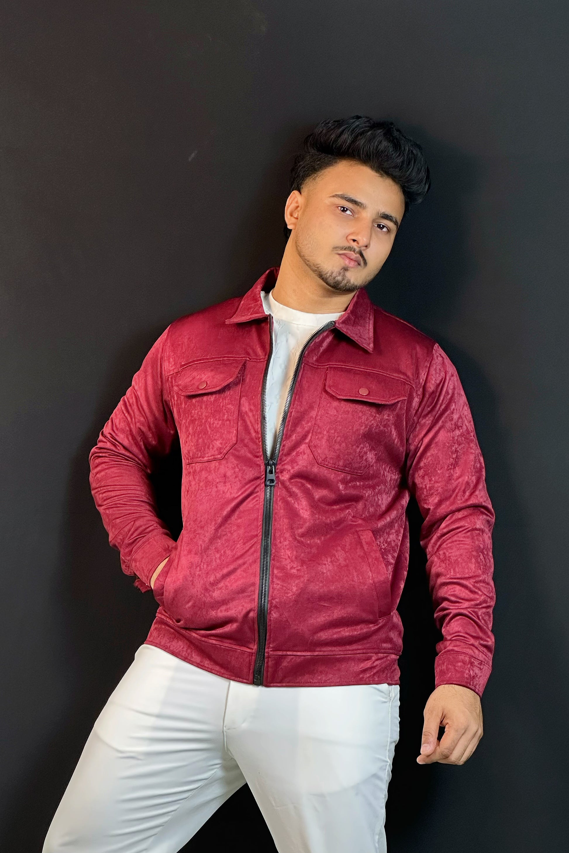 মেরুন কালার চায়না ভেলভেট জ্যাকেট-Collar