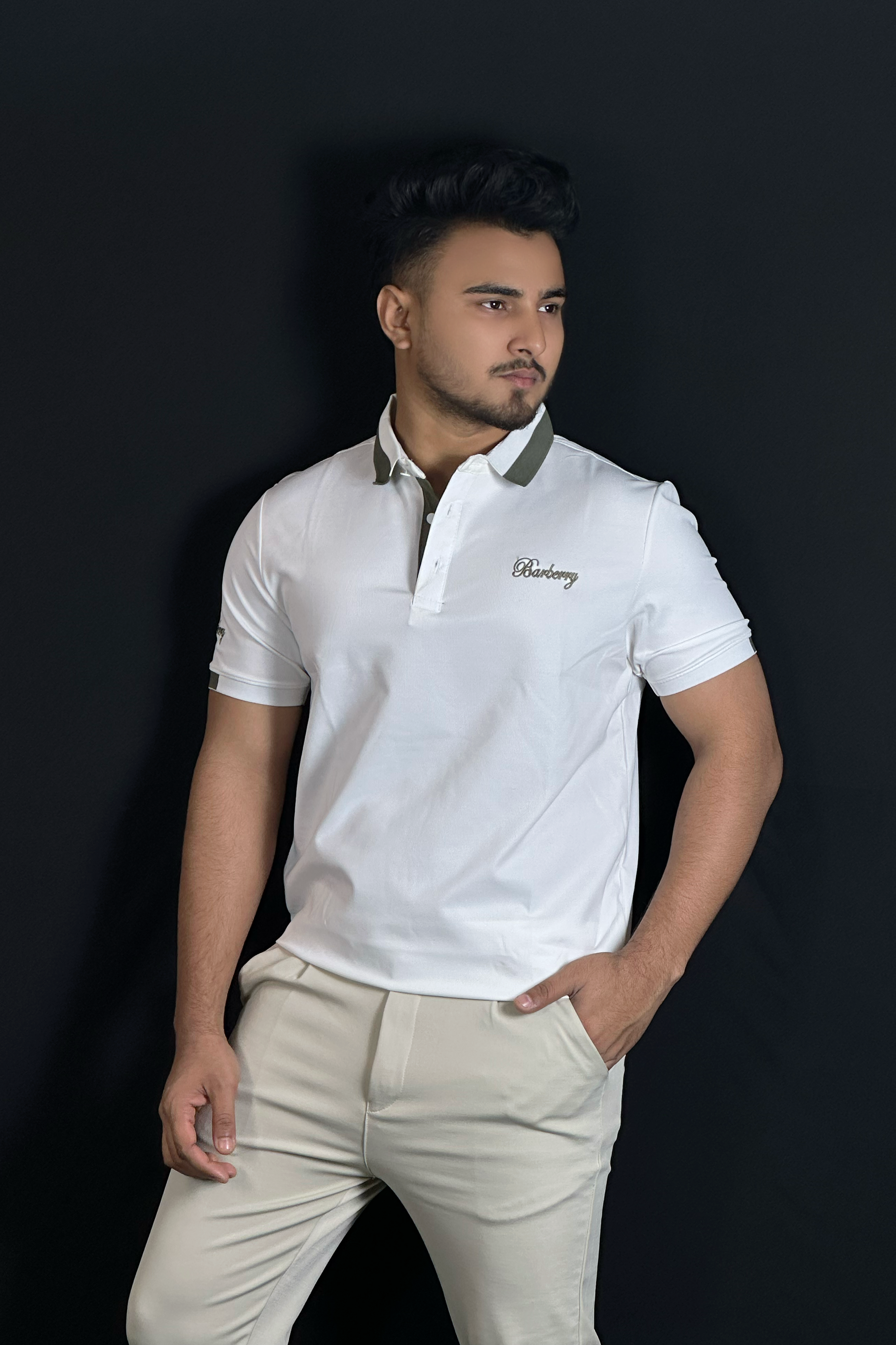 সাদা কালার পোলো টি-শার্ট-Barbery